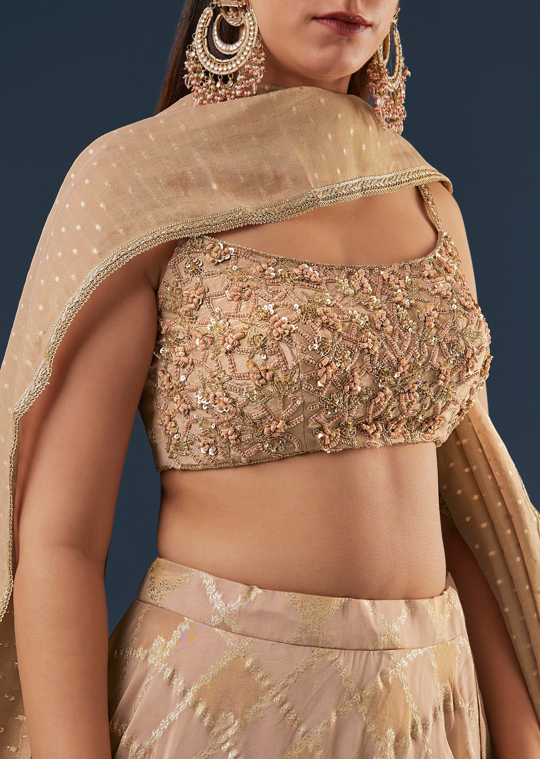 Copper Gold Banarasi Lehenga Set With Square Neck Blouse