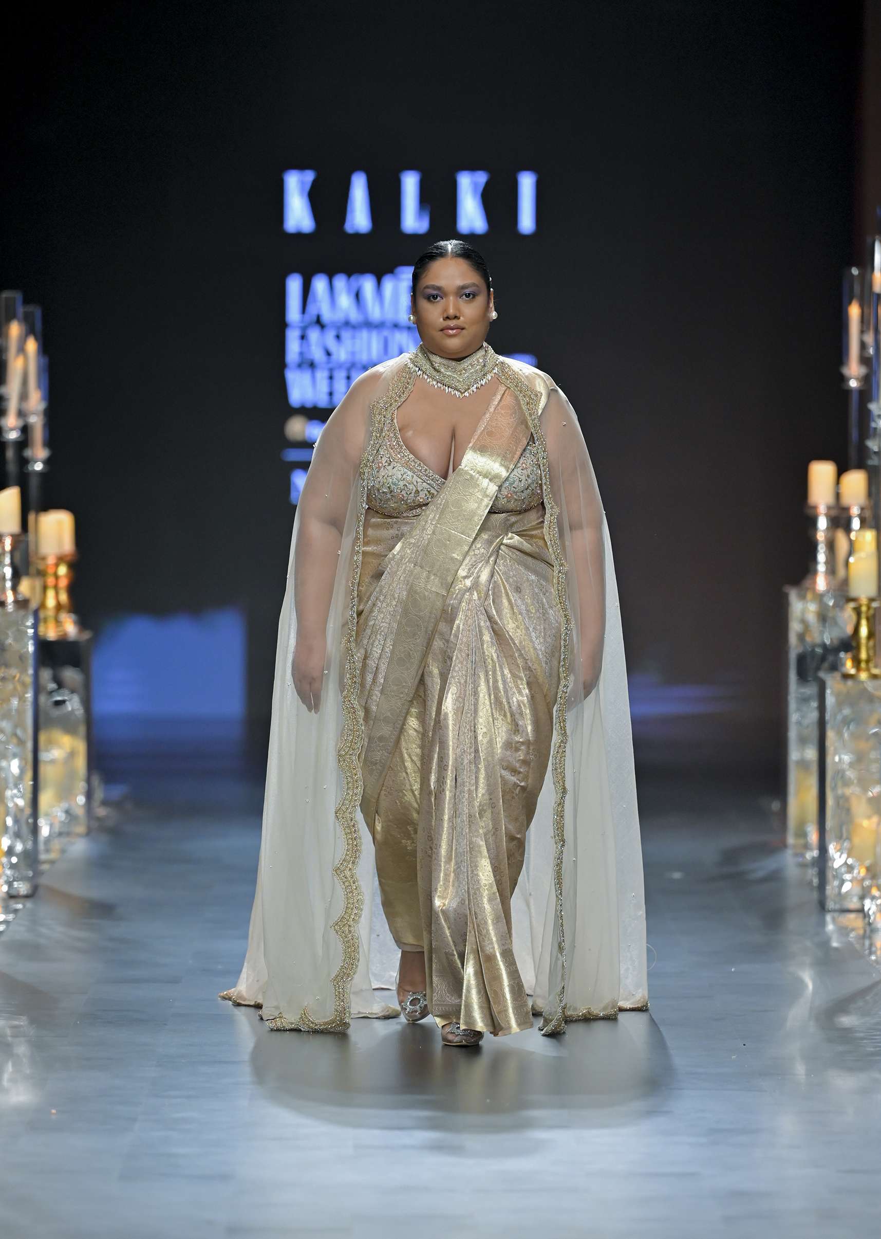 An iconic saree that you will want to don this wedding season for a regal flair. This opulent Banarasi silk drape is paired with an embroidered blouse.The sleeveless blouse has pearl handwork and a deep sweetheart neckline.It comes with a back hook closure and comfortable padding.The dupatta is attached to the saree and comes with choker enhanced with hanging pearl tassels.Ensuring free-flowing movement, this gold delight is a standout choice for a glamorous occasion. Awarded as the Most Trusted Brand, we're delivering styles you love, just as promised.