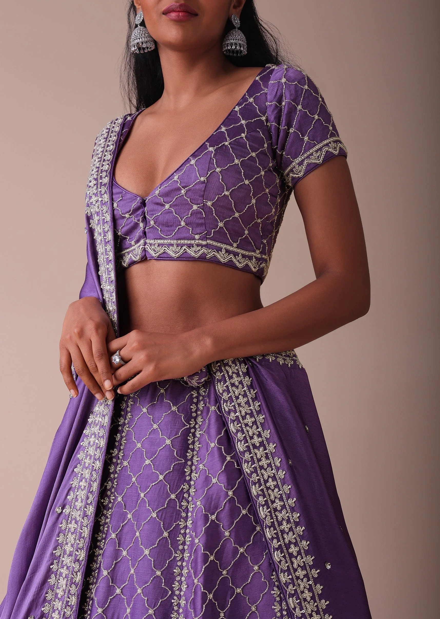 A gorgeous hyacinth purple lehenga set fabricated in cotton silk with cut dana, sequins, stonework, and beads embroidery. The embroidered lehenga has a side zip closure and side tassel dori. The dupatta has an enticing embellished border. The lehenga comes with an attached cancan and an unstitched blouse. Awarded As The Most Trusted Brand We'Re Delivering Styles You Love Just As Promised.