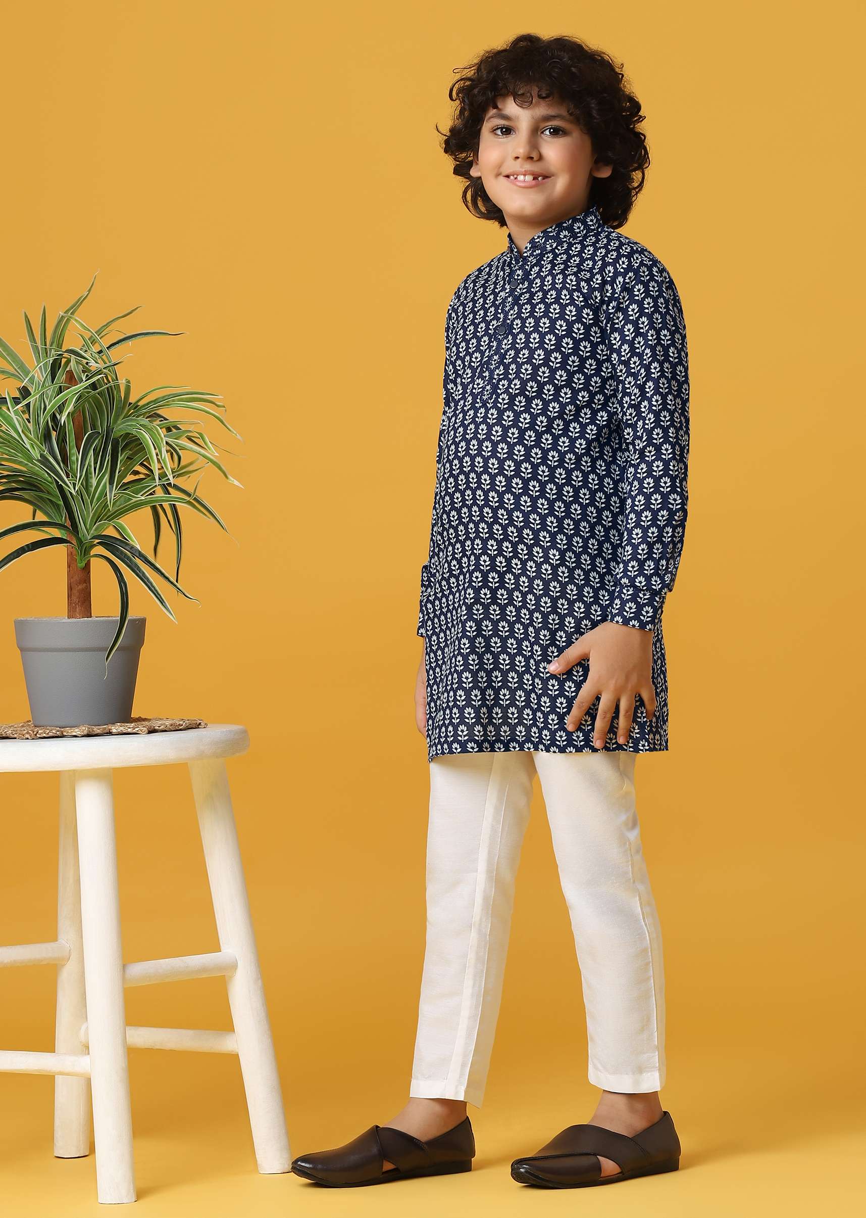 Elevate festive occasions with our vibrant Boys' Kurta Set in a rich silk fabric, The Kurta features intricate print detailing. The mandarin collar and full sleeves add a touch of traditional charm. The set includes a classic kurta and coordinating pants, offering a timeless and comfortable silhouette. Awarded as the Most Trusted Brand, we're delivering styles you love, just as promised.